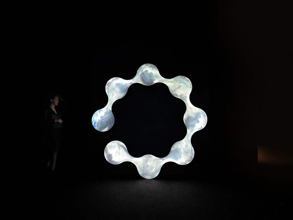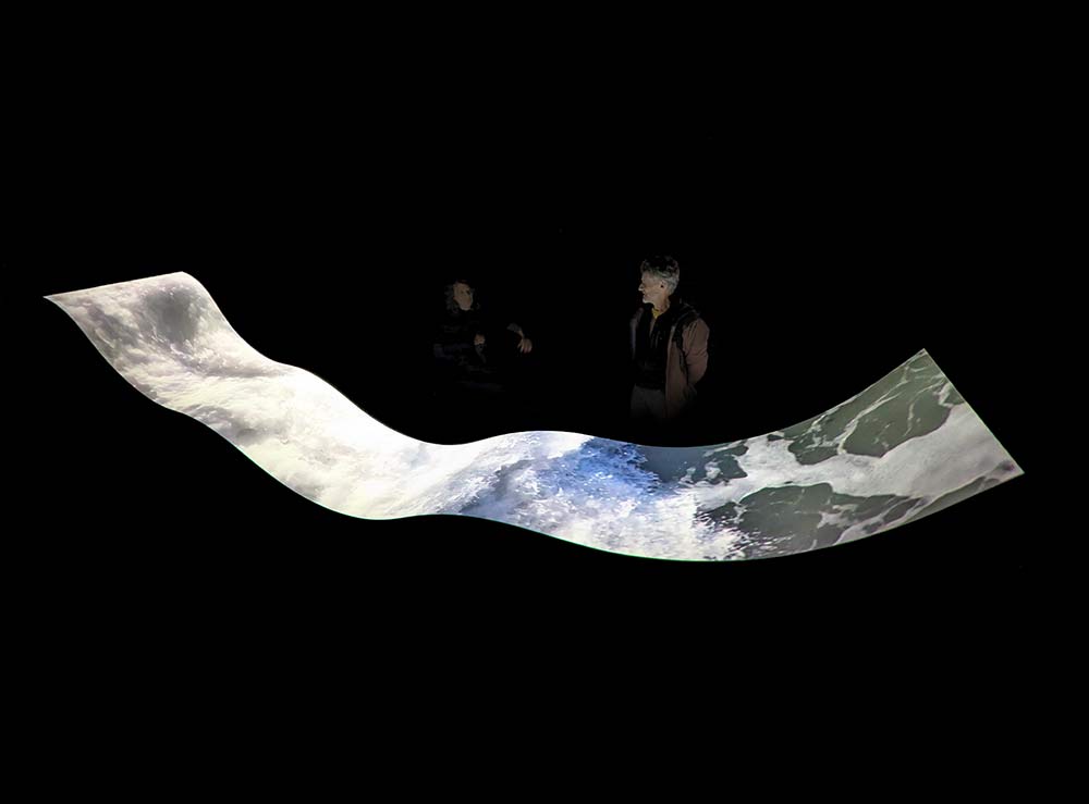 C’est là un rêve d’enfant, il va sans dire. Je m’amuse ici à confronter ses rêveries à la dureté d’une réalité où les représentations du désastre en cours en seraient publicitaires, comme si l’on essayait de nous vendre en même temps un monde rêvé et sa fin brutale. J’imagine le contexte de cette œuvre comme si elle était installée dans une grotte, ou une caverne. Comme si elle se référait à la mise en scène de l’allégorie de la caverne de Platon. Comment fonder une réflexion épistémologique sur les origines de la connaissance et comment en tirer le meilleur parti – celui d’une humanité dégagée de son Hybris.